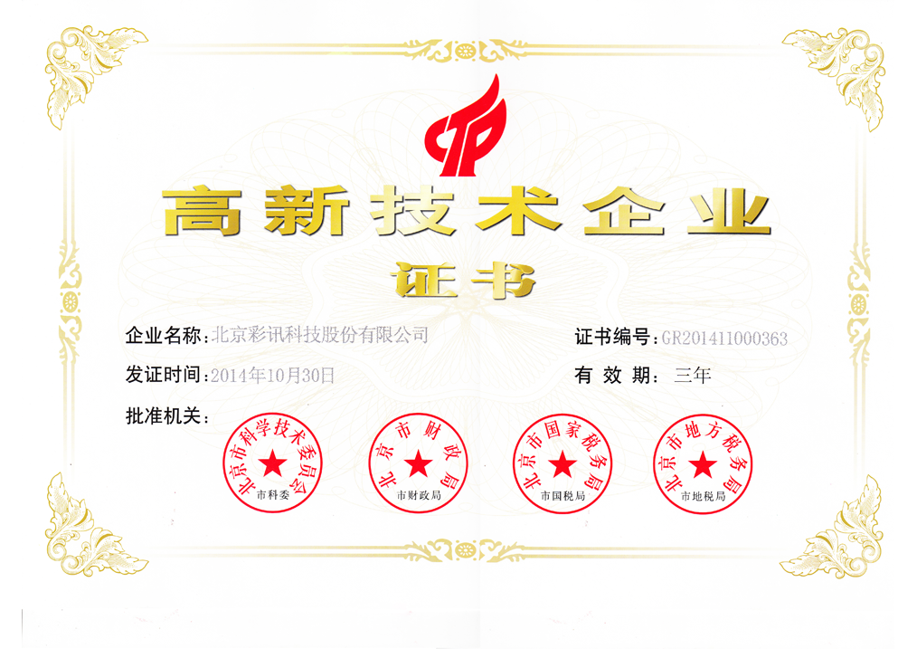 高新技術(shù)企業(yè)證書