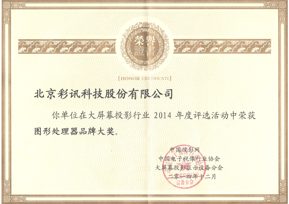 投影時(shí)代網(wǎng)年度優(yōu)秀品牌獎(jiǎng)證書