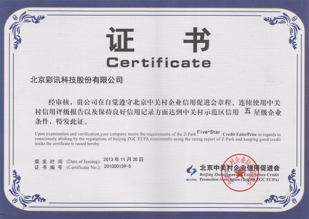 中關(guān)村示范區(qū)信用五星級企業(yè)