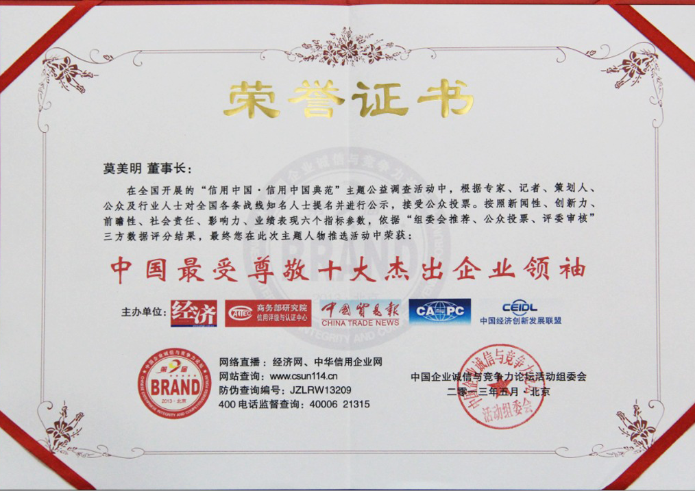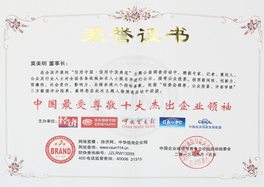 中國最愛尊敬十大杰出企業(yè)領(lǐng)袖...